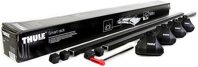 Багажник на крышу Thule SmartRack 784 для автомобиля с рейлингами состоит из двух стальных поперечин с резиновым покрытием и четырех опор, предназначенных для фиксации на рейлингах с диаметром дуги 18-55 мм. Поперечины багажника отличаются высокой прочностью, позволяют устанавливать дополнительные аксессуары и перевозить крупногабаритные грузы до 75 кг. Резиновое покрытие предохраняет поверхность поперечин от царапин. Багажник запирается специальным инструментом, идущем в комплекте. Высота опоры - 7 см. Опционально совместим с Thule WingBar, SlideBar и AeroBar.