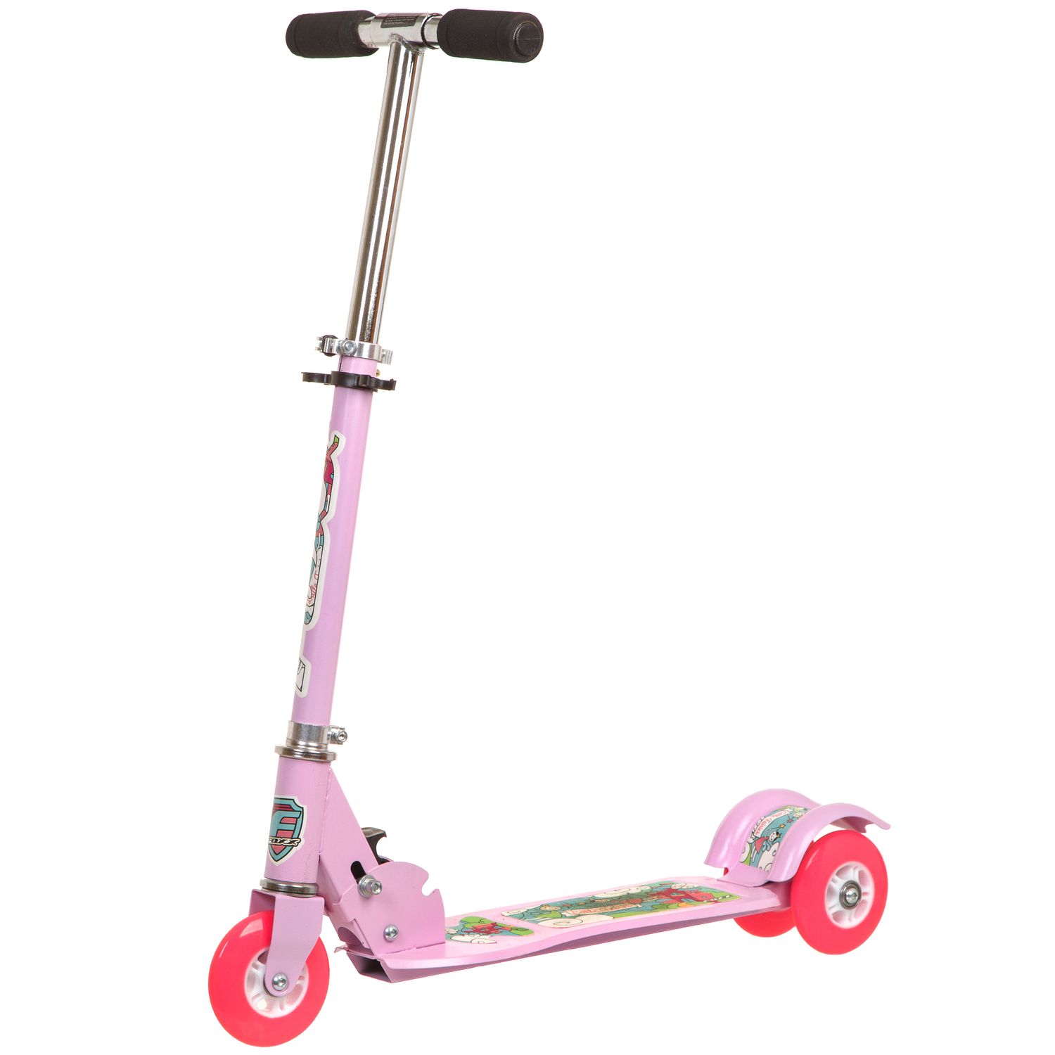 Foxx Fairy Tale 100 мм - детский самокат, предназначенный для самых юных любителей быстрой езды. У самоката 3 колеса, позволяющих ребенку удерживать равновесие. Колеса изготовлены из плотного и упругого материала. Рама самоката изготовлена из прочного, но легкого металлического сплава. Руль самоката регулируется по высоте, позволяя адаптировать компактный транспорт под рост ребенка. За безопасность отвечает ножной тормоз, расположенный над задним колесом, который поможет быстро остановиться перед неожиданным препятствием.