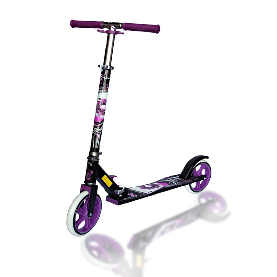 Маневренный городской самокат от Amigosport - это отличная модель для ежедневных поездок. Прочная складная рама из алюминия выдерживает нагрузку до 100 кг. Большие колеса самоката 200мм обеспечивают хороший накат, а благодаря подшипникам ABEC-5 самокат ездит абсолютно бесшумно. Высота руля регулируется  по высоте до 88 см. В ассортименте три цвета: фиолетовый, зеленый и красный.
