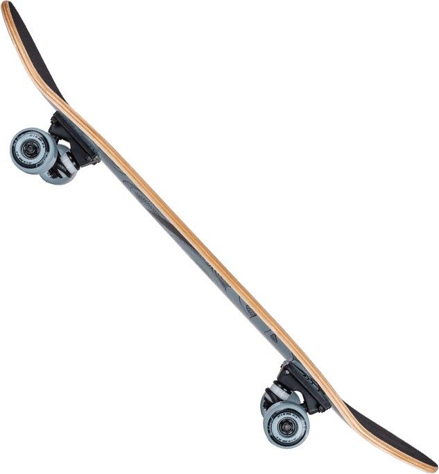 Колеса: Скейтборд оснащен поливиниловыми колесами размером 54х36 мм, изготовленными из PVC с жесткостью 85A. Эти колеса устойчивы к проколам и способны скользить, повышая устойчивость райдера при приземлении после прыжка.