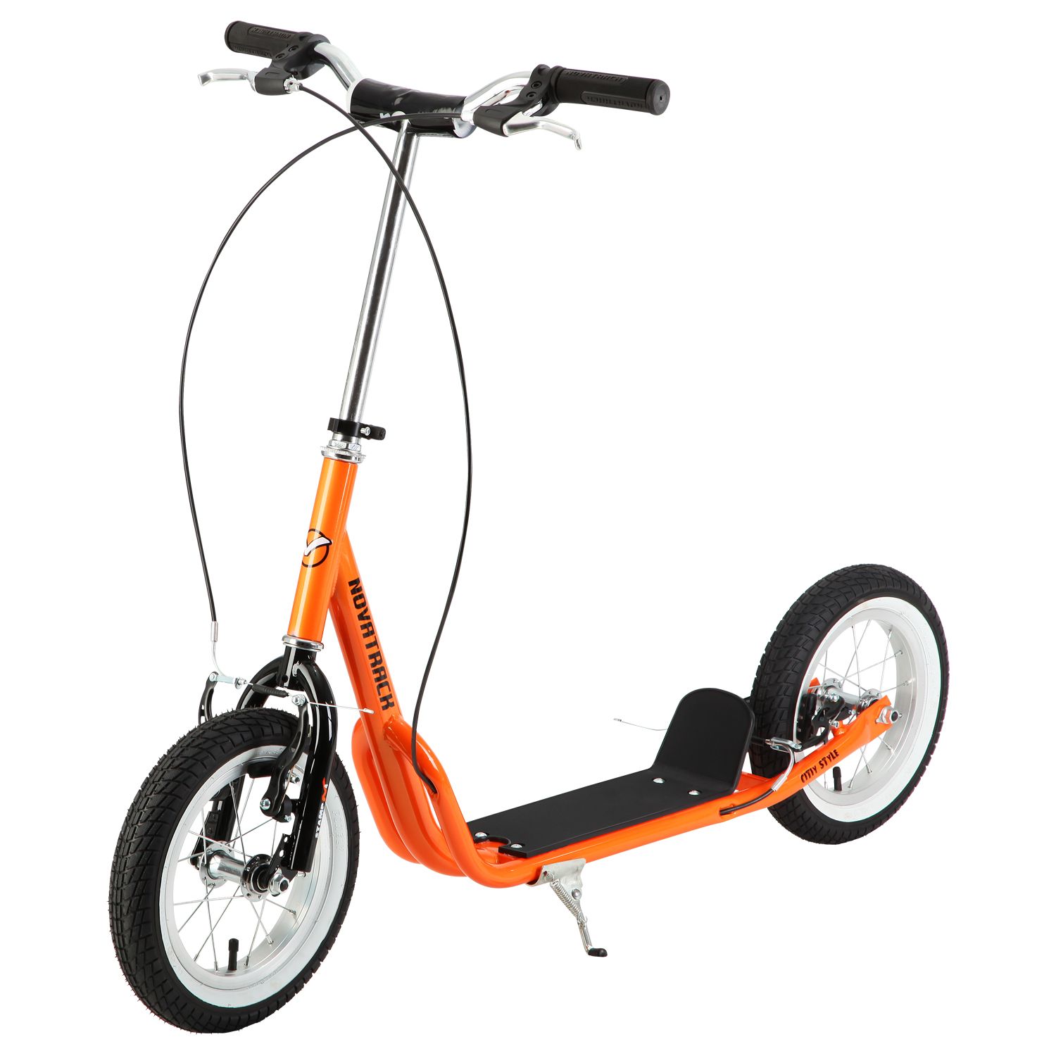 Самокат Novatrack STAMP N4 порадует всех любителей активного образа жизни от самых маленьких до более опытных. Широкие надувные колеса диаметром 12 дюймов позволят кататься не только по асфальтовым дорожкам, но и с легкостью преодолевать парковые тропинки. Надежный ручной тормоз обеспечивает безопасное торможение даже с очень крутой горки! Надувные колеса имеют ряд ощутимых преимуществ. Они бесшумны, с мягкими колёсами поездка будет мягче и комфортнее. Хорошо защищают от неровностей благодаря амортизирующим свойствам. Такие колёса комфортны при езде по неровным дорогам. В дождливую погоду надувные колеса увереннее держатся в поворотах. Они отлично тормозят и не скользят на разных поверхностях. Благодаря отличному сцеплению, помогают развивать более высокую скорость.