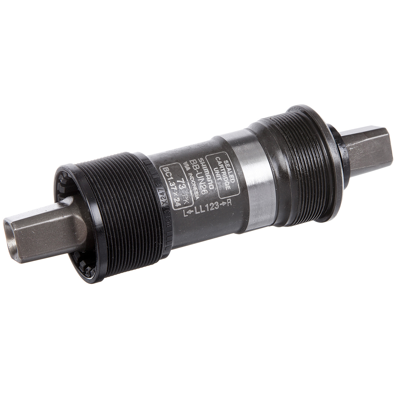 Каретка Shimano UN26. Длина вала 73 мм, длина оси 122.5 мм.без болтов