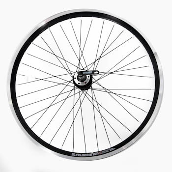Колесо 24" переднее в сборе(без резины) с двойным алюминиевым ободом на 36 спиц со втулкой под дисковый тормоз.
