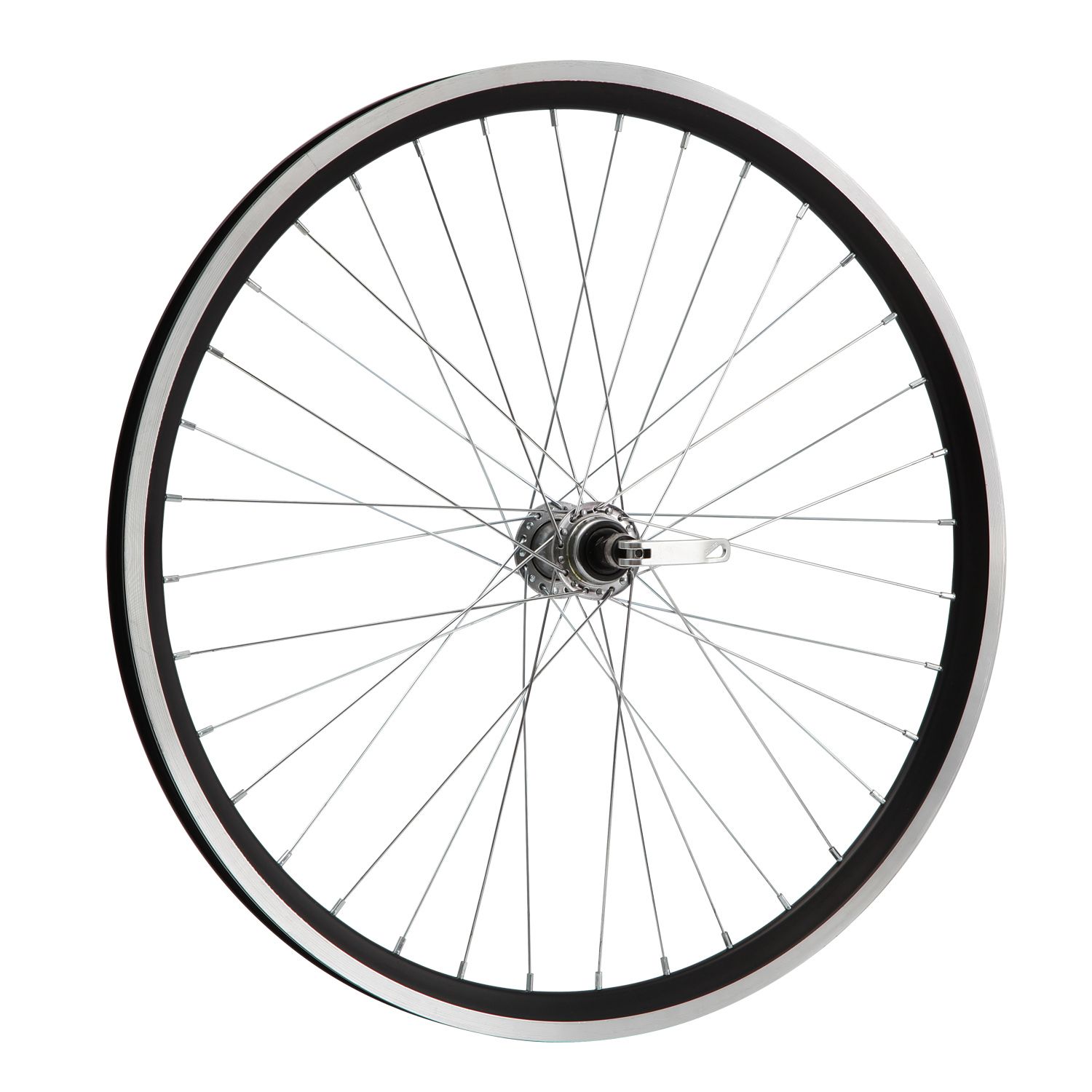 Колесо 24" переднее в сборе(без резины) с двойным алюминиевым ободом на 36 спиц со втулкой под дисковый тормоз.