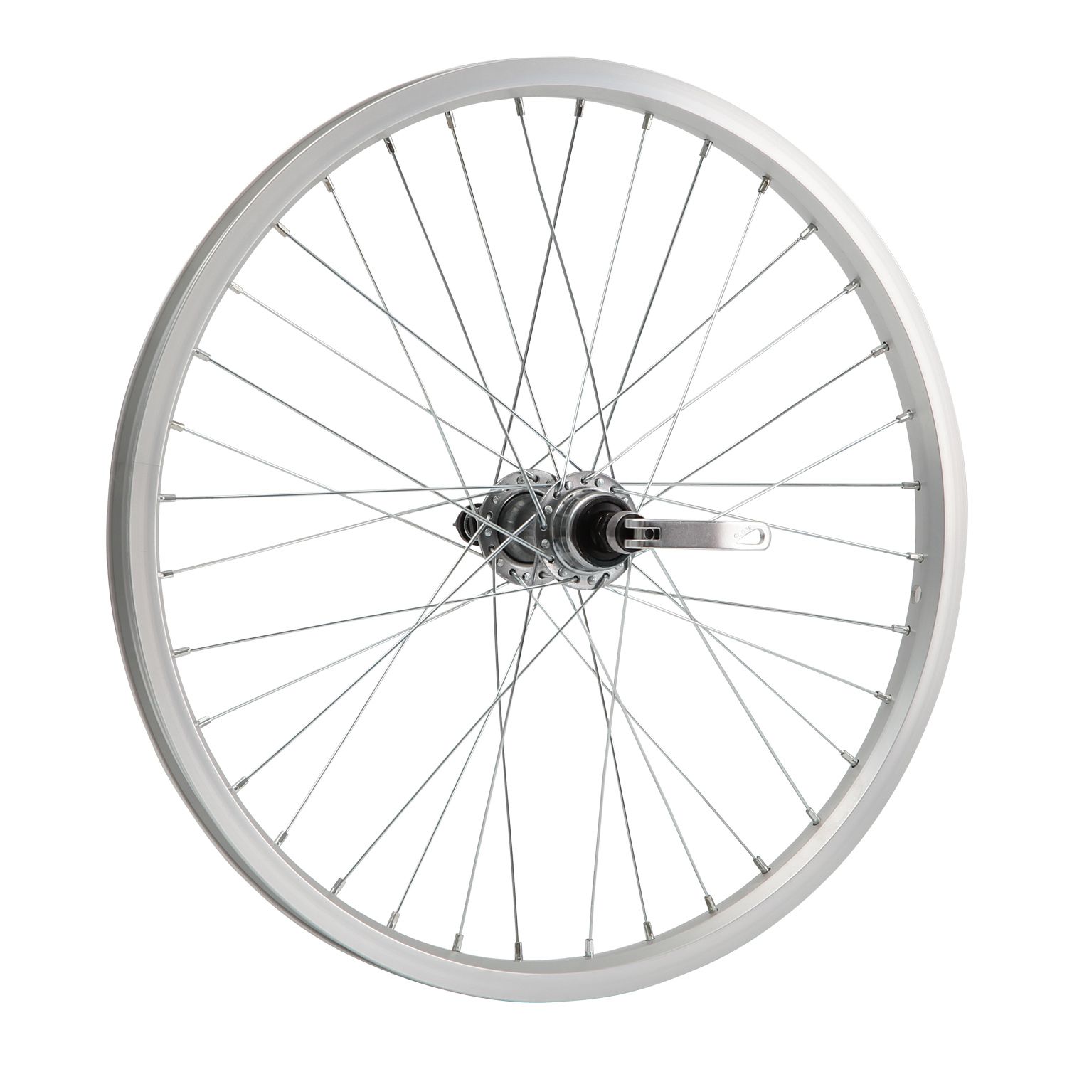 Колесо 20" заднее в сборе(без резины) с одинарным алюминиевым ободом на 36 спиц со втулкой под трещетку на 6 звездочек.