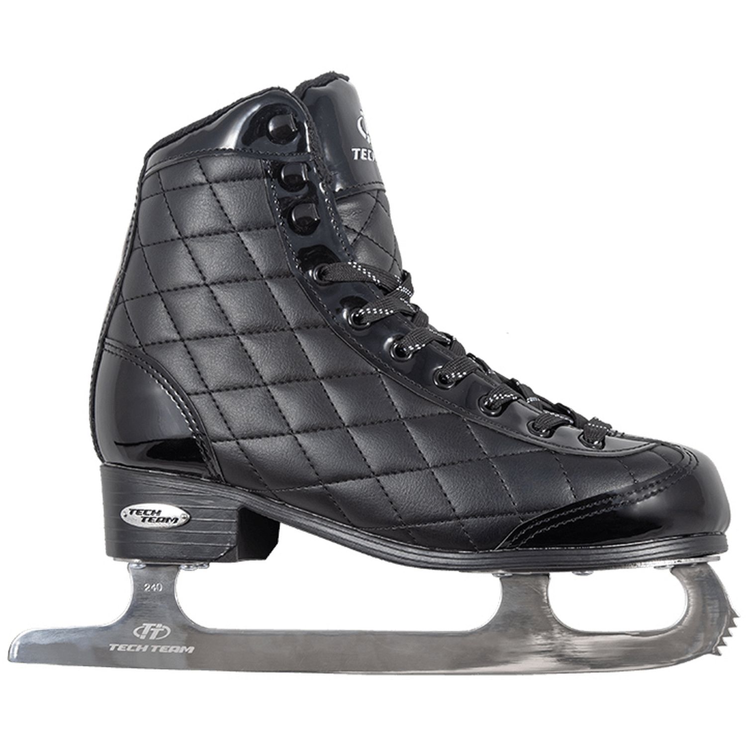 Практичные женские фигурные коньки с ботинком из искусственной кожи и подкладкой из короткого синтетического меха.