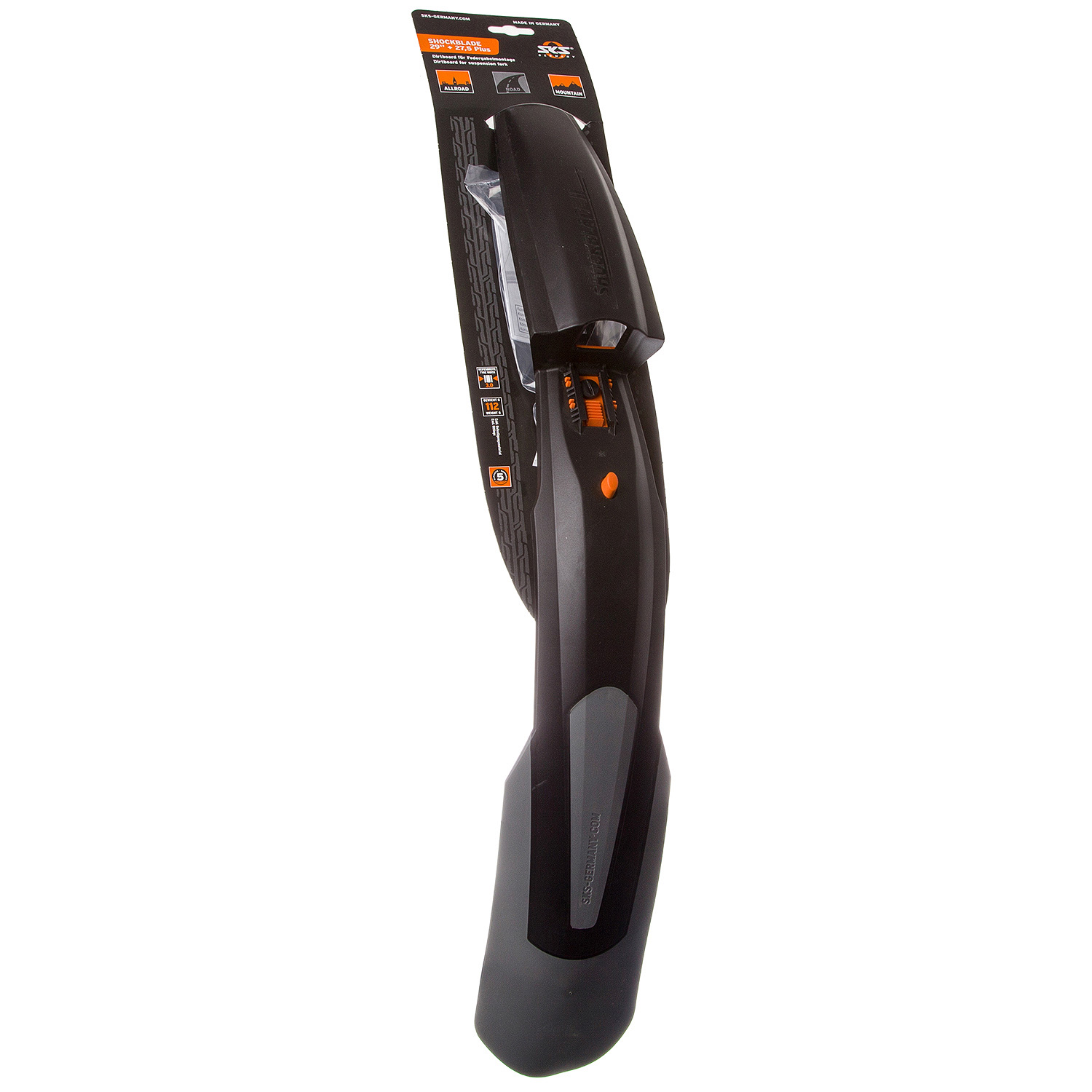 Крыло увеличенной длины SKS Shockblade II 28"+29", которое подходит для велосипедов с колёсами 28 и 29 дюймов. Выполнено из прочного пластики, имеет широкий профиль, что позволяет максимально защитить велосипедиста от грязи и брызг.
