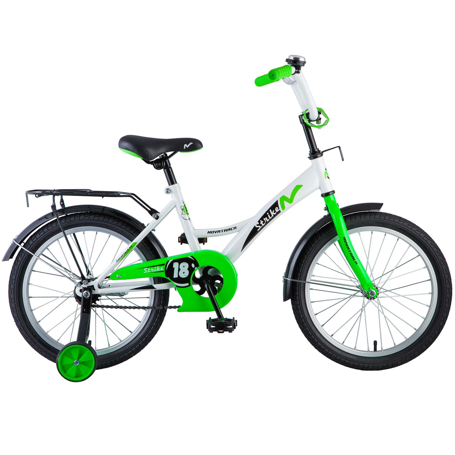 Хотите, чтобы ваш ребенок, играя, укреплял здоровье Тогда ему нужен удобный и надежный велосипед Novatrack Strike 18, рассчитанный на ребят 5-8 лет. Одного взгляда малыша хватит, чтобы раз и навсегда влюбиться в свой новенький двухколесный транспорт, который можно назвать и четырехколесным. Велосипед собран на базе рамы с универсальной геометрией, которая позволяет легко взобраться или слезть с велосипеда маленькому наезднику, при этом велосипед имеет такой вес, что маленький ребенок сам легко справляется со своим транспортным средством.