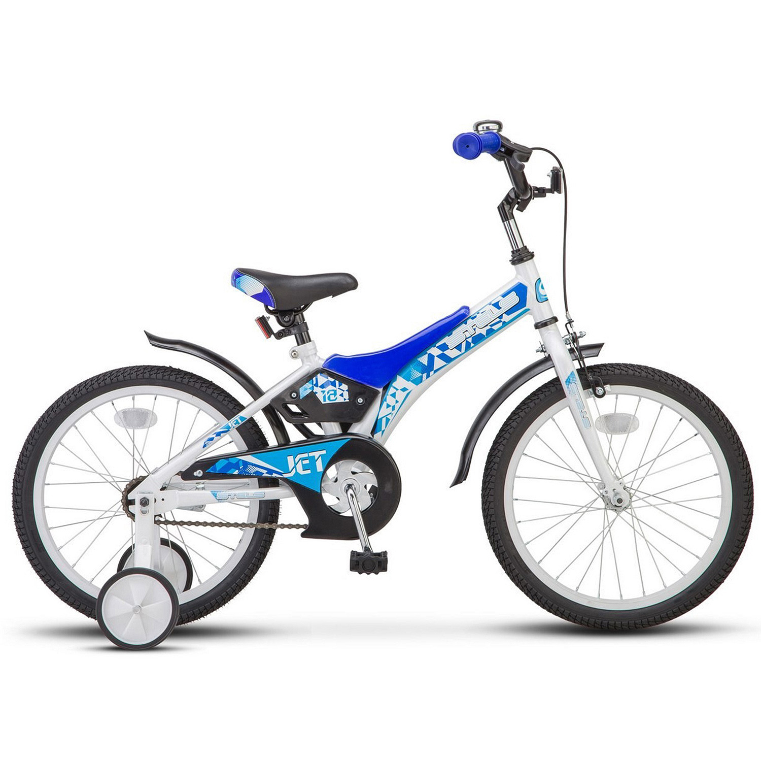 Stels Jet 18 велосипед для самых юных райдеров. Немного агрессивная форма байка за счет оригинального цветового решения и специальных накладок на раму придает велосипеду особую неповторимость. Сразу стоит оговориться, что модель одинаково хорошо подойдет и мальчикам, и девочкам, чтобы научиться кататься на велосипеде.