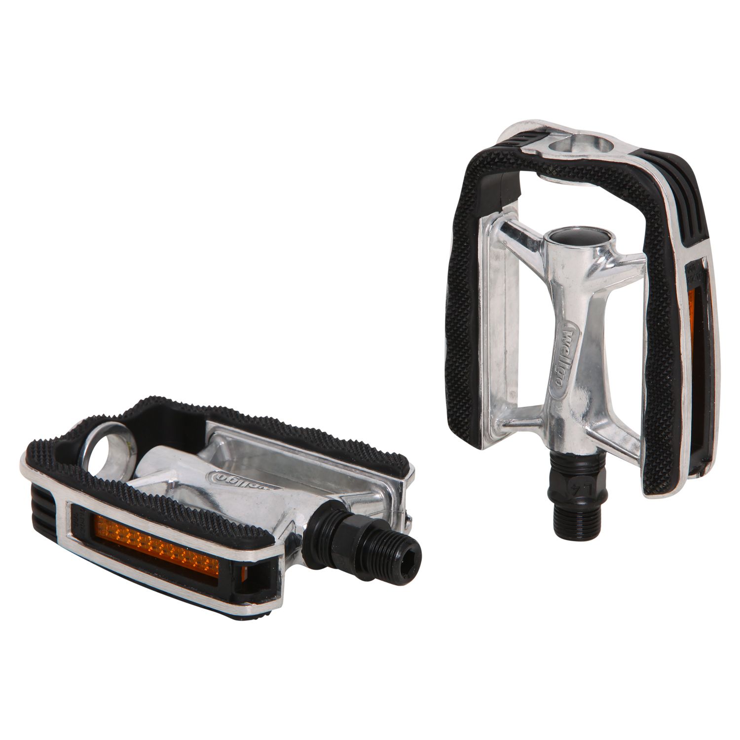 Стальные педали с черной пластиковой рамкой с катафотами.