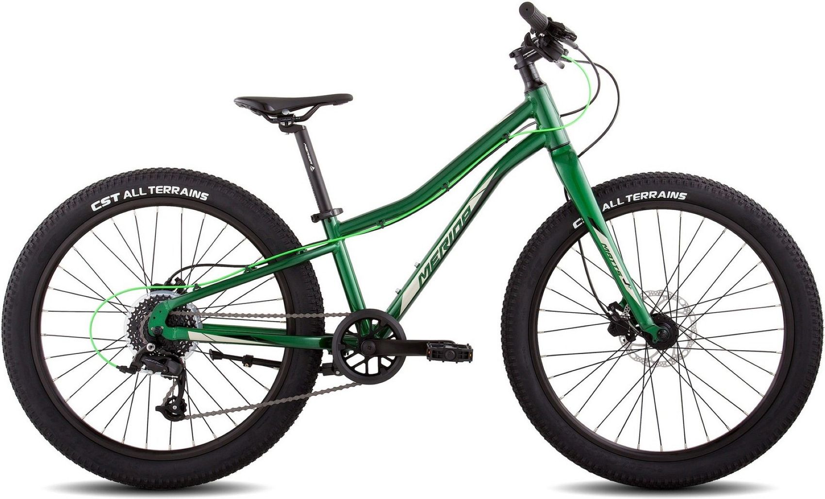Велосипед для подростков, с оборудованием начального класса Microshift, 8 скоростей. Подходит для прогулочного катания в городских условиях и по несложным маршрутам в лесу. Технические особенности: диаметр колес - 24 дюйма, рама из легкого алюминиевого сплава Matts J.24+ alloy TFS, жесткая алюминиевая вилка Merida J.24+ alloy disc, двойные алюминиевые обода Merida alloy, дисковые гидравлические тормоза Tektro HD-M275.