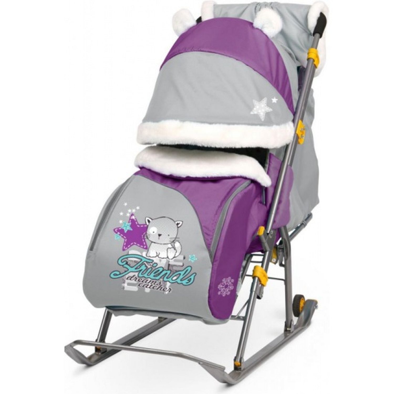 Детские санки-коляска Ника Детям 6 в зимнем дизайне. Санки значительно расширят ваши возможности во время зимних прогулок с ребенком. Крыша, чехол для ножек и ушки на крыше отделаны мехом, на ручку санок надевается меховая муфта для маминых ручек. Яркие рисунки выдержаны в зимней тематике. Высокий козырек и увеличенная ширина посадочного места позволяют чувствовать себя комфортно малышу в теплом комбинезоне и шапке с помпоном.