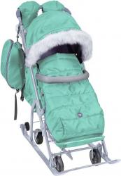 Санки-коляска Ника Детям 7-5SK (НД7-5SK/М), мятный – это сочетание удобства, функциональности и стильного дизайна. Яркая модель с продуманными деталями подарит малышу тепло и комфорт во время зимних прогулок, а вам – лёгкость в управлении и спокойствие за его безопасность.