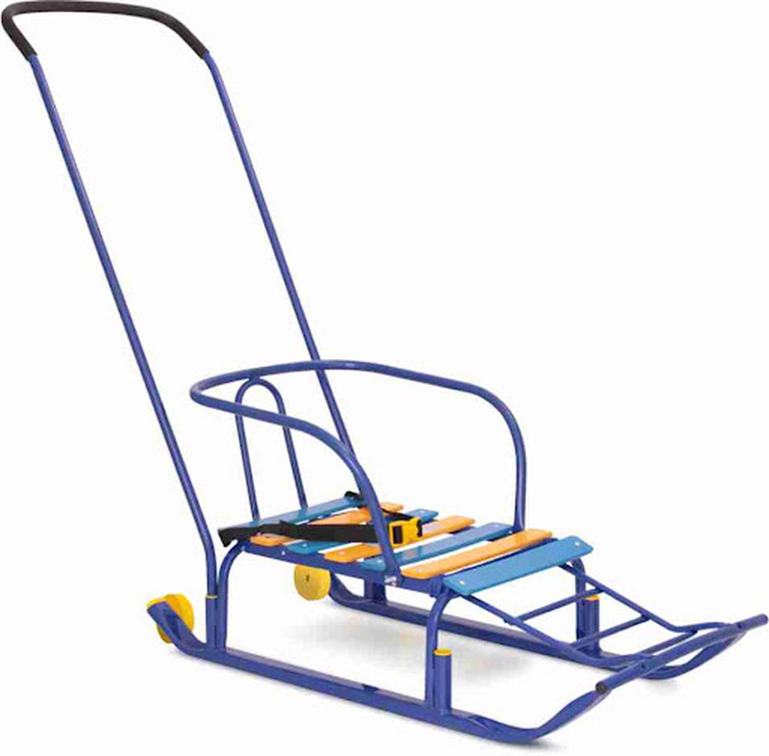 Функциональные и практичные санки от российского производителя придутся по душе любому малышу. Они имеют прочный металлический каркас, удобную спинку и сиденье из деревянных реек. Впереди имеется подставка для ног. Санки можно доукомплектовать мягким сиденьем. Также санки комплектуются веревкой, чтобы возить за собой. Компактные размеры позволяют хранить их даже в небольшом шкафу. Родительская ручка удобна в использовании. Ремень безопасности надежно зафиксирует малыша.