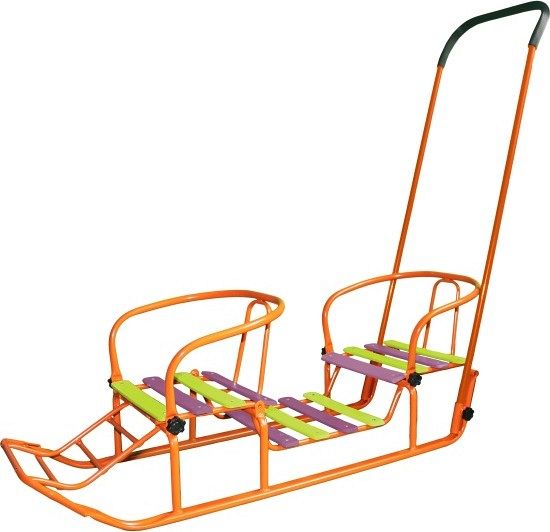 Санки для двойни Погодки подходят для двоих детей от 1 до 3 лет. Максимальная нагрузка до 50 кг.
