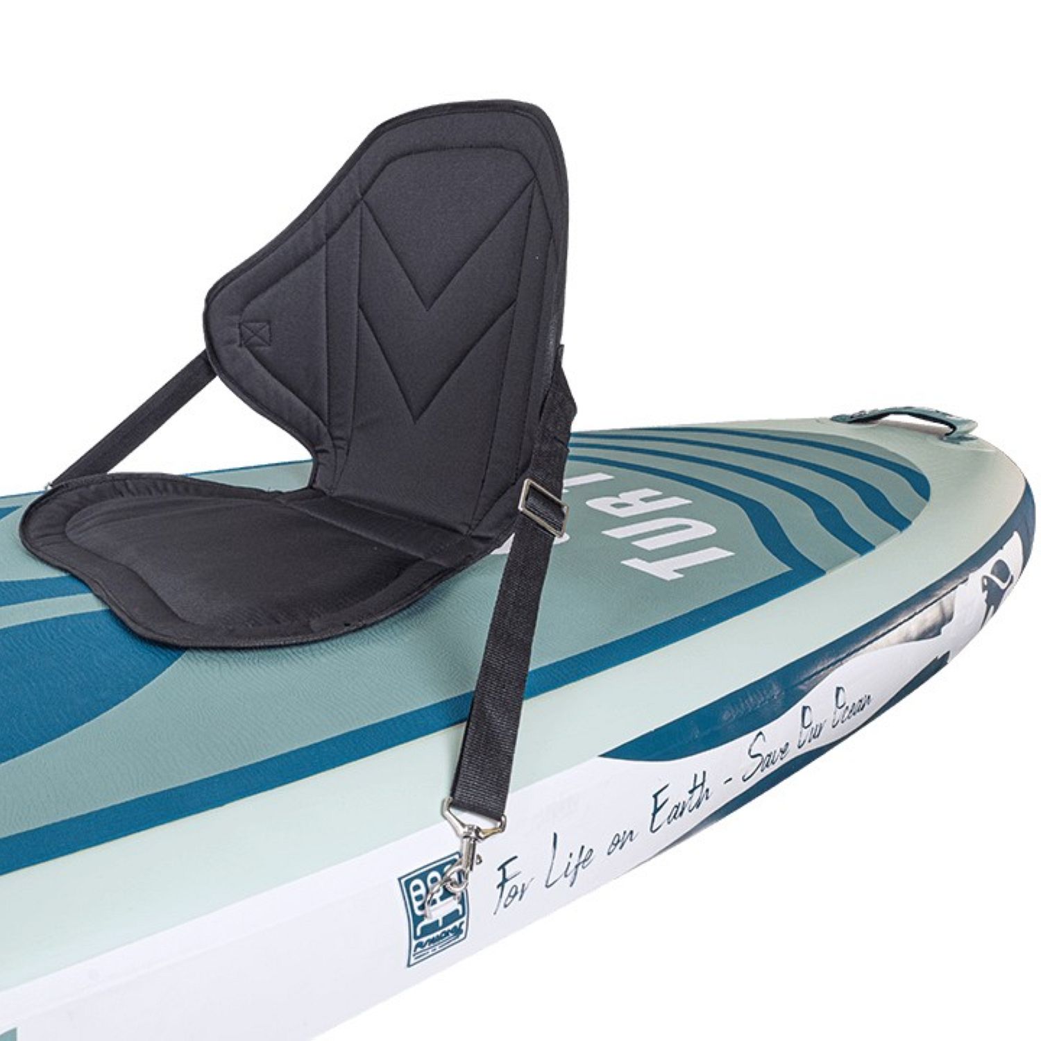 Сапборд TechTeam Funwater Sea Turtle - доступная модель повышенной устойчивости и грузоподьемности с сидением в комплекте. При изготовлении использован новый ПВХ-материал высокой плотности, на 35% легче аналогов. Корпус доски в результате стал легче по весу и более износостойким.