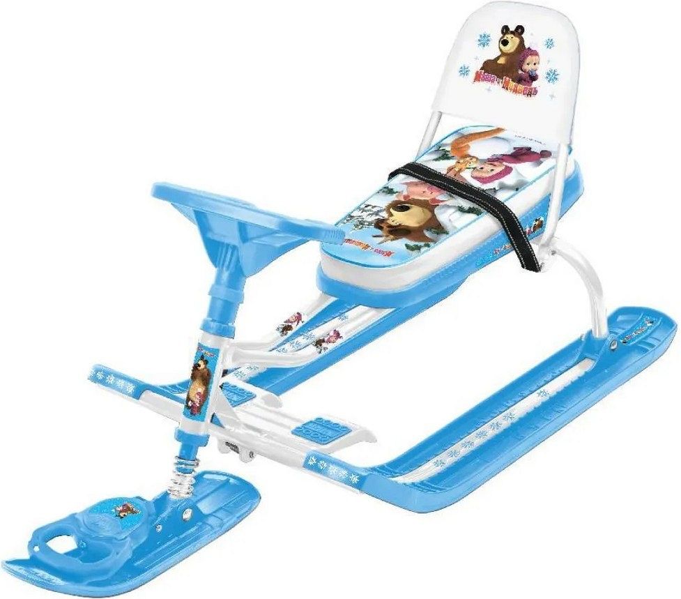 Снегокат "Маша и медведь" со спинкой предназначены для перевозки детей по плотному снегу или льду, катанию с горок, при температуре воздуха от 0°С до -25°С.