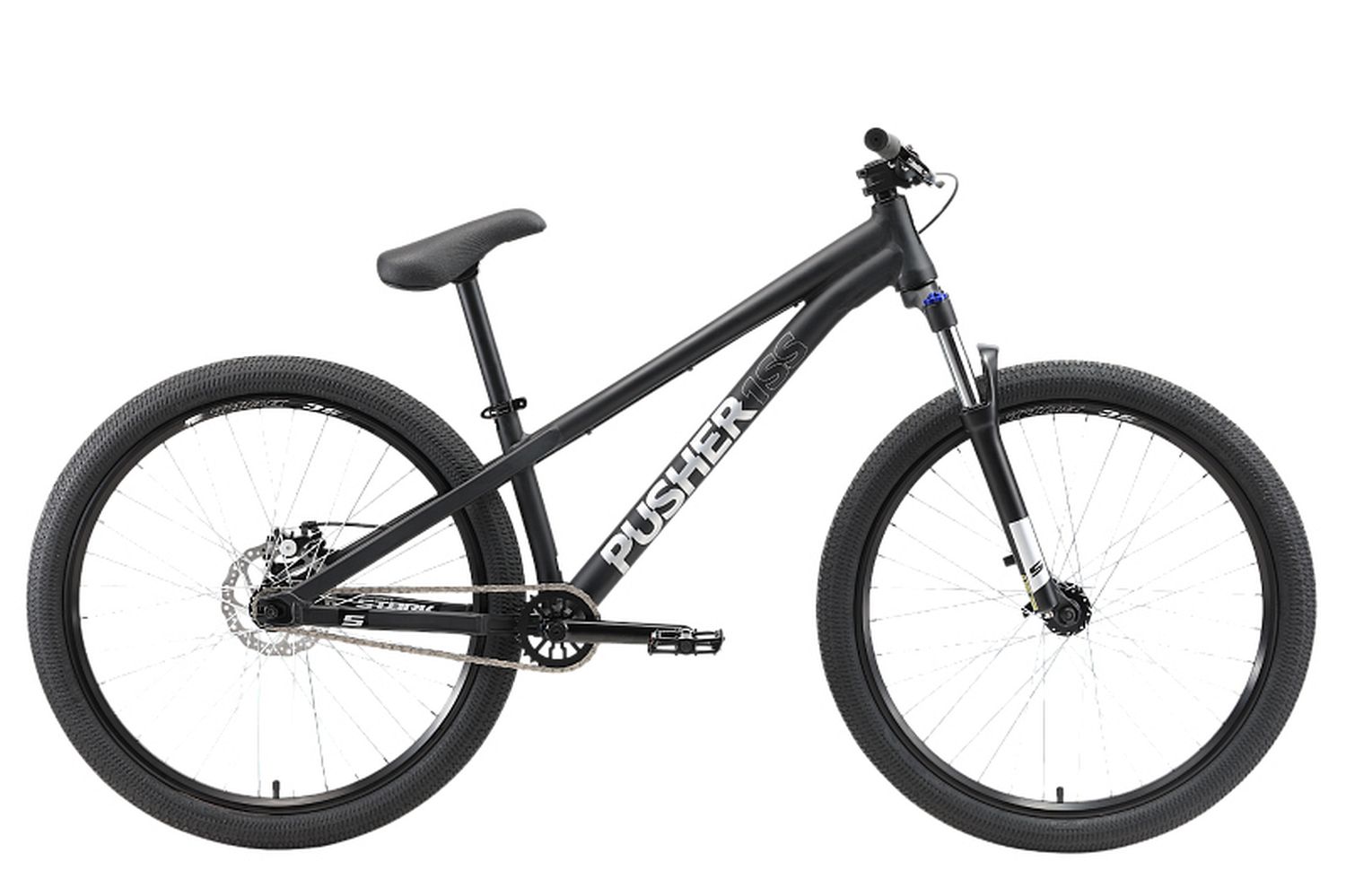 Stark Pusher 1 SS - это экстремальный односкоростной велосипед для дерт джампинга и слоупстайла. Подойдет для начинающих райдеров. В данной модели используется профессиональная рама Pusher Pro, которая идеально спроектирована для прыжков и полетов на велосипеде и используется райдерами команды Stark. На байк установлены прочные компоненты, способные выдержать высокие нагрузки, такие как BMX седло, BMX шатуны, двойные обода, короткий массивный вынос и т.д.Покрышки с гладким протектором обеспечат хороший накат.