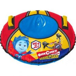 Тюбинг с рисунком «Фиксики» изготовлен из прочного тента, который устойчив к морозам до 28 градусов, все швы усилены капроновой лентой.