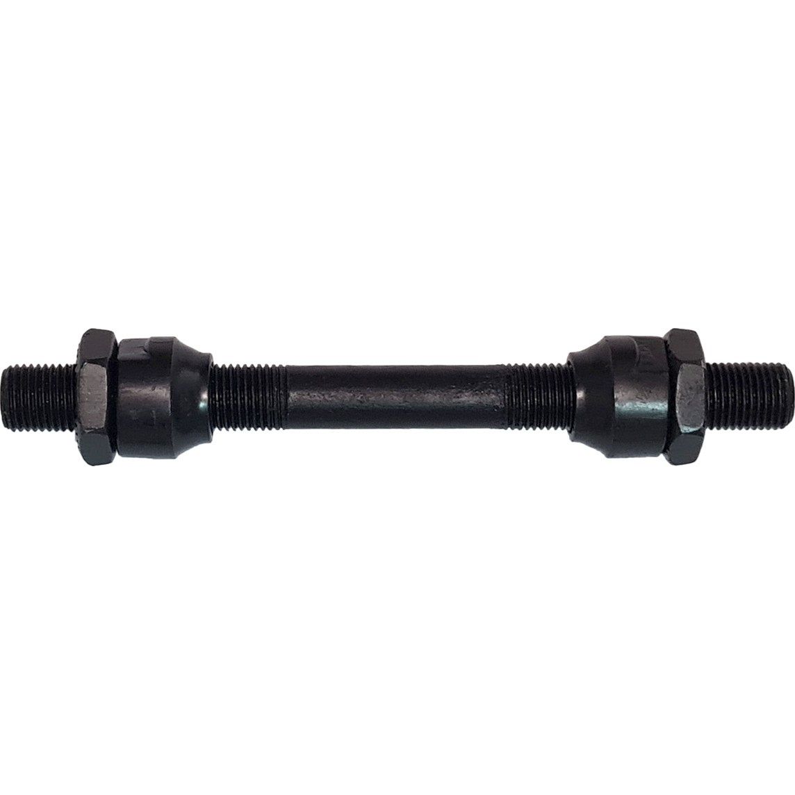 Ось передней втулки предназначена для крепления колеса к вилке велосипеда. Имеет диаметр 3/8 дюйма и длину 108 мм. Полая конструкция из высококачественной стали обеспечивает лёгкость и прочность. В комплект входят конусы и контр гайки для надежной фиксации и регулировки натяжения подшипников. Чёрное покрытие защищает от коррозии и придает стильный вид. Подходит для большинства велосипедов с эксцентриковым креплением.