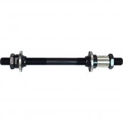 Ось задней втулки предназначена для надёжного крепления заднего колеса к раме велосипеда. Имеет диаметр 3/8 дюйма и длину 145 мм. Полая конструкция из высококачественной стали отличается лёгкостью и прочностью. В комплект входят конусы и контр гайки для точной регулировки натяжения подшипников. Чёрное покрытие защищает от коррозии и придаёт стильный вид. Подходит для большинства велосипедов с эксцентриковым креплением, гарантируя стабильность и долговечность в эксплуатации.