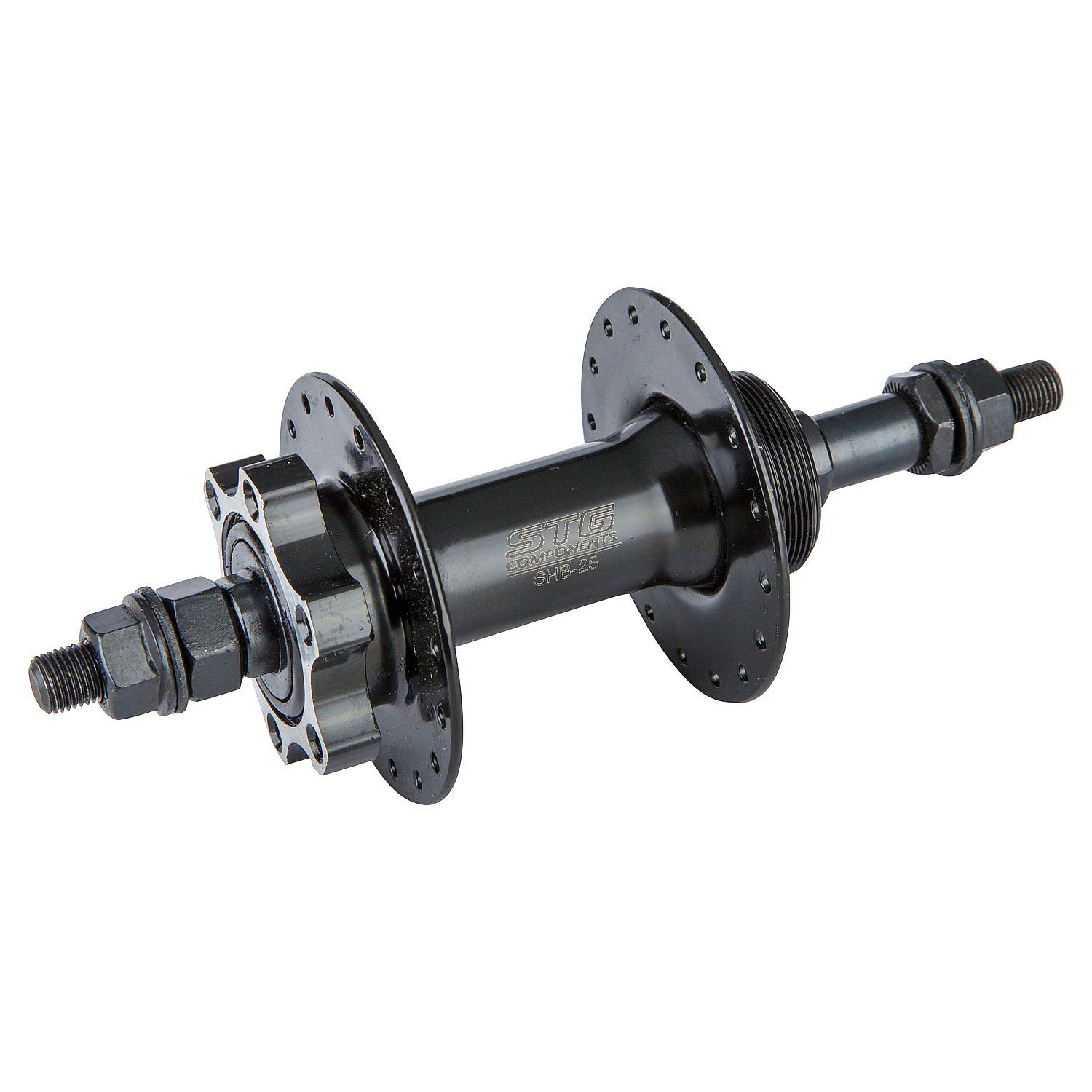 Втулка STG A25 задняя под трещетку, под дисковый тормоз 6 болтов. На 32 спицы под болты. Материал сталь.